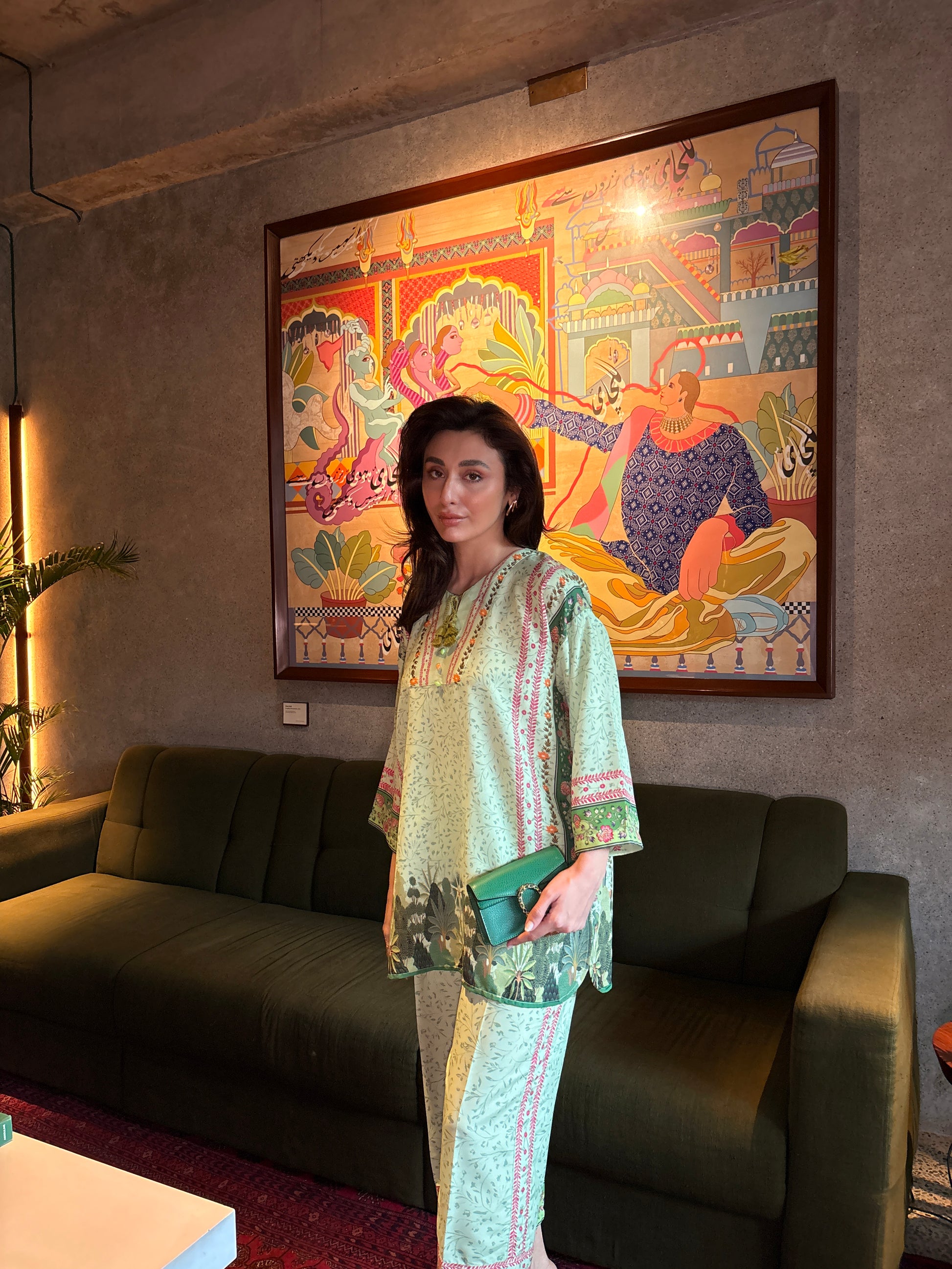 Where nature meets elegance. Our Botanical Muse is crafted from premium Arabic Lawn, offering a soft, breathable feel with wrinkle-resistant ease. Effortless grace in every fold.