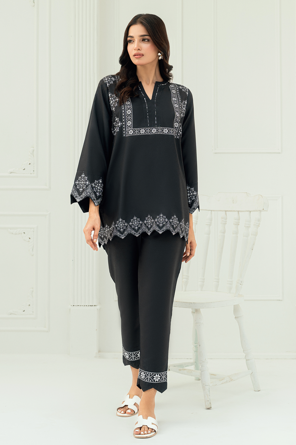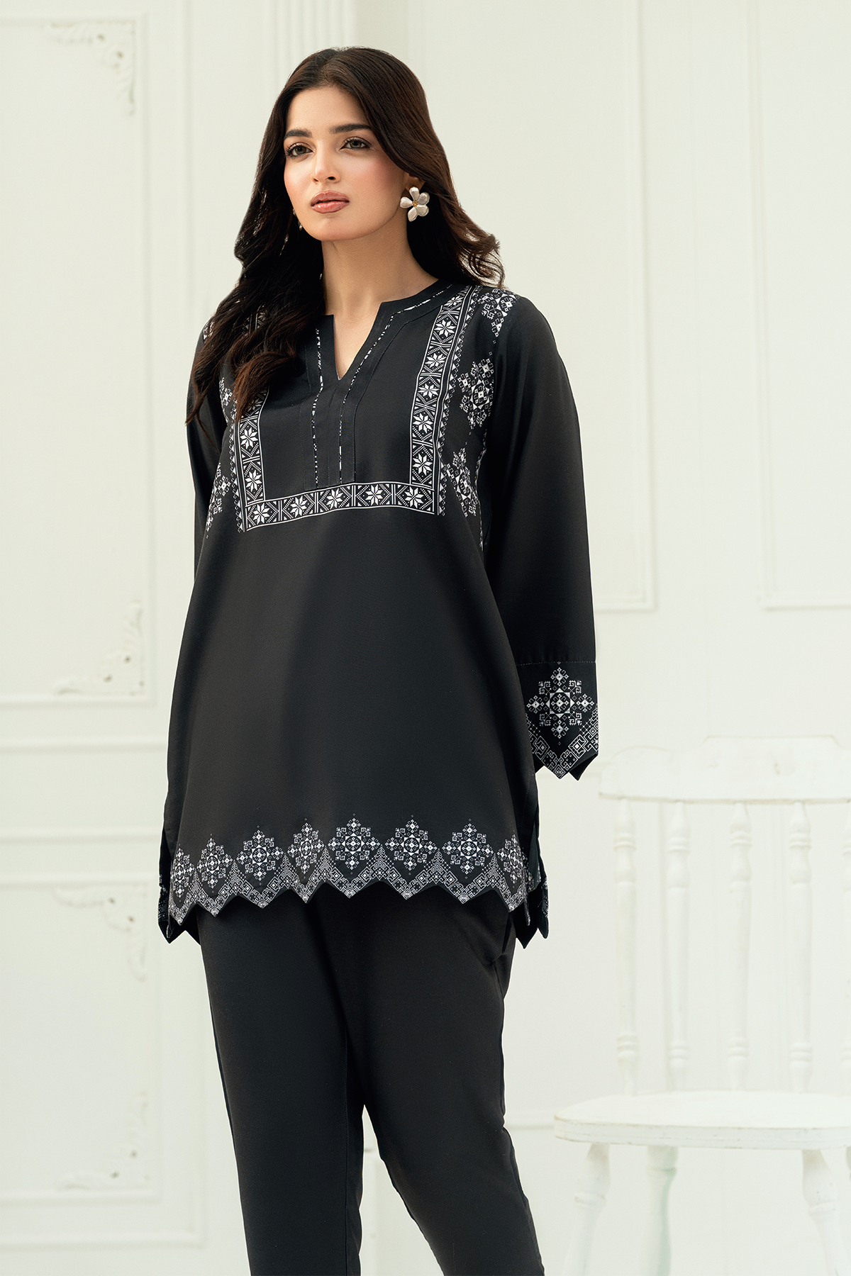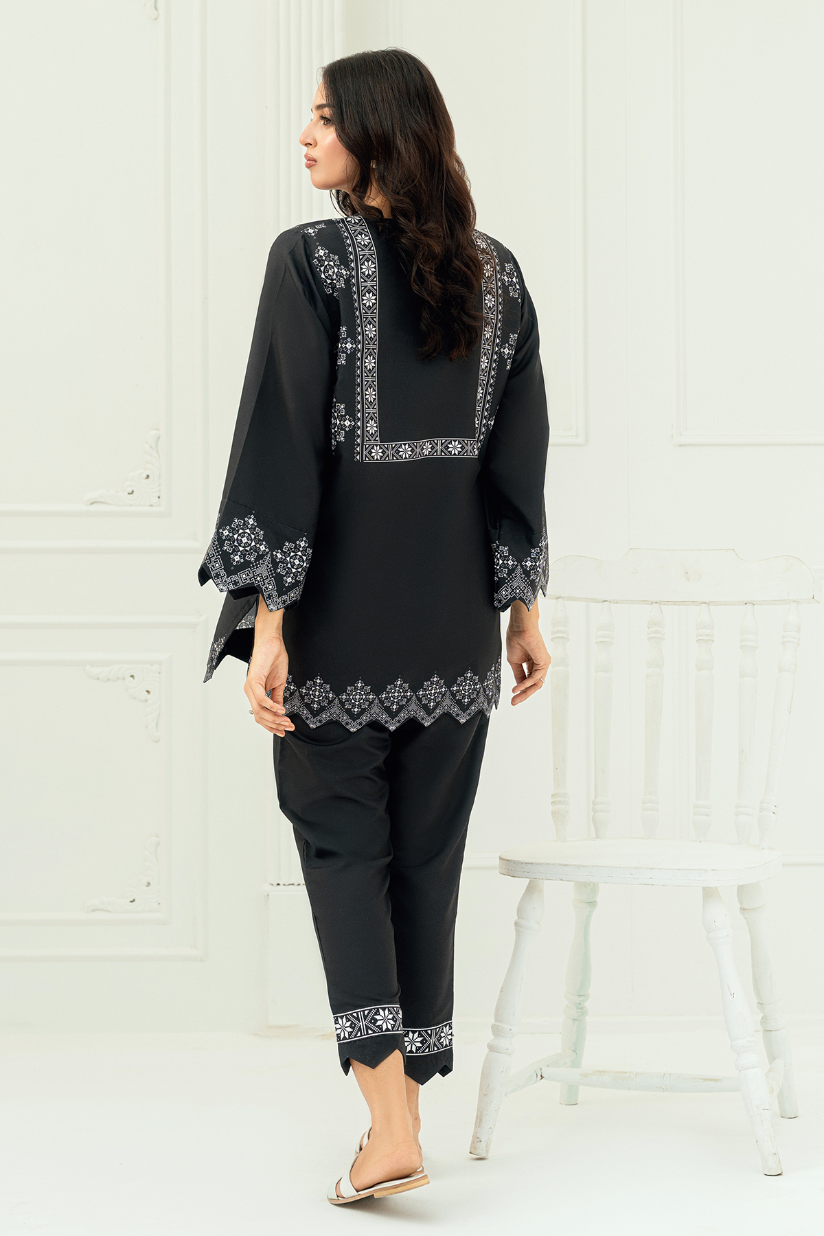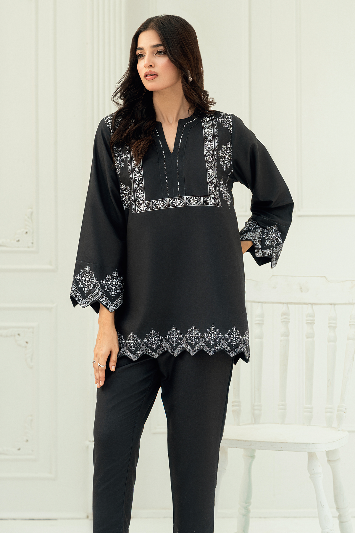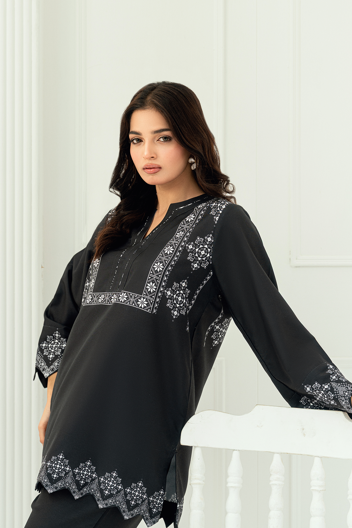 Elevate your everyday style with Ziva, a chic black soft lawn suit adorned with delicate Print. This relaxed silhouette ensures comfort, while the intricate borders add a touch of sophistication. Perfect for casual gatherings or effortless daily wear.
